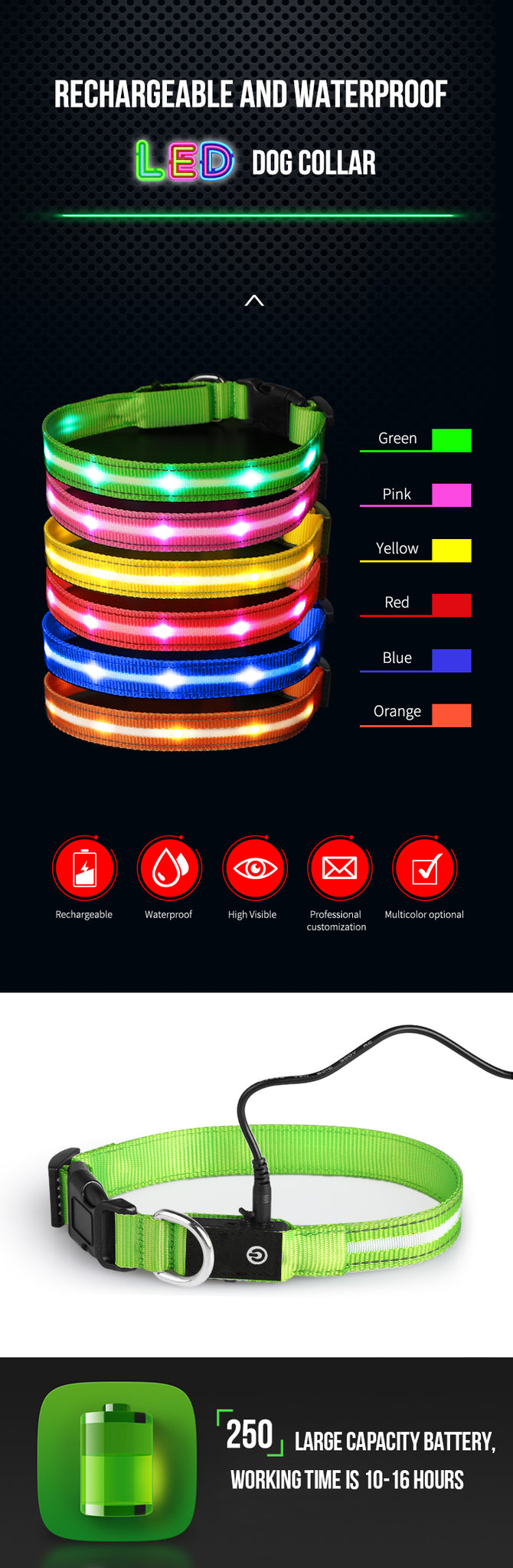 Flashing Dog Collar Rechargeable LED Luminous Dog Collars Waterproof Light Up