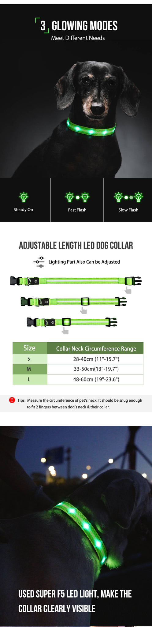 Dog Collars Super Bright 3 Modes Adjustable for Small Medium Large Dogs