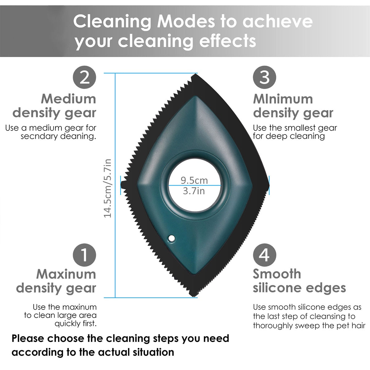 【4 Cleaning Modes】Our mini pet hair remover provides 4 different densities of gears for cleaning pet hair in different scenarios. You can switch to the corresponding cleaning mode according to the number of pet fur to achieve the best cleaning effect.