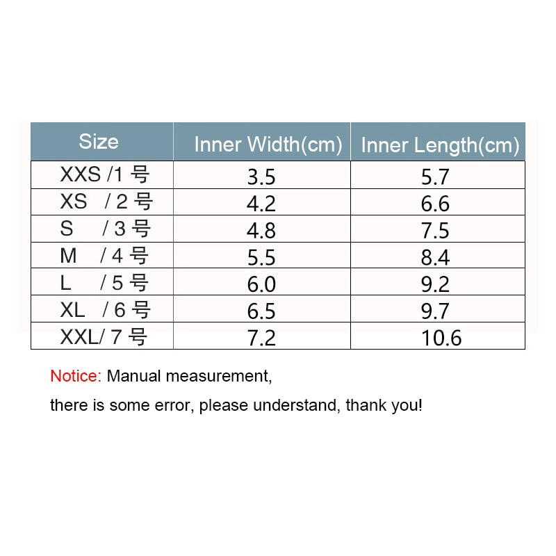 4) Note: measure all paws one by one, dog front paw size is different with back paw size.