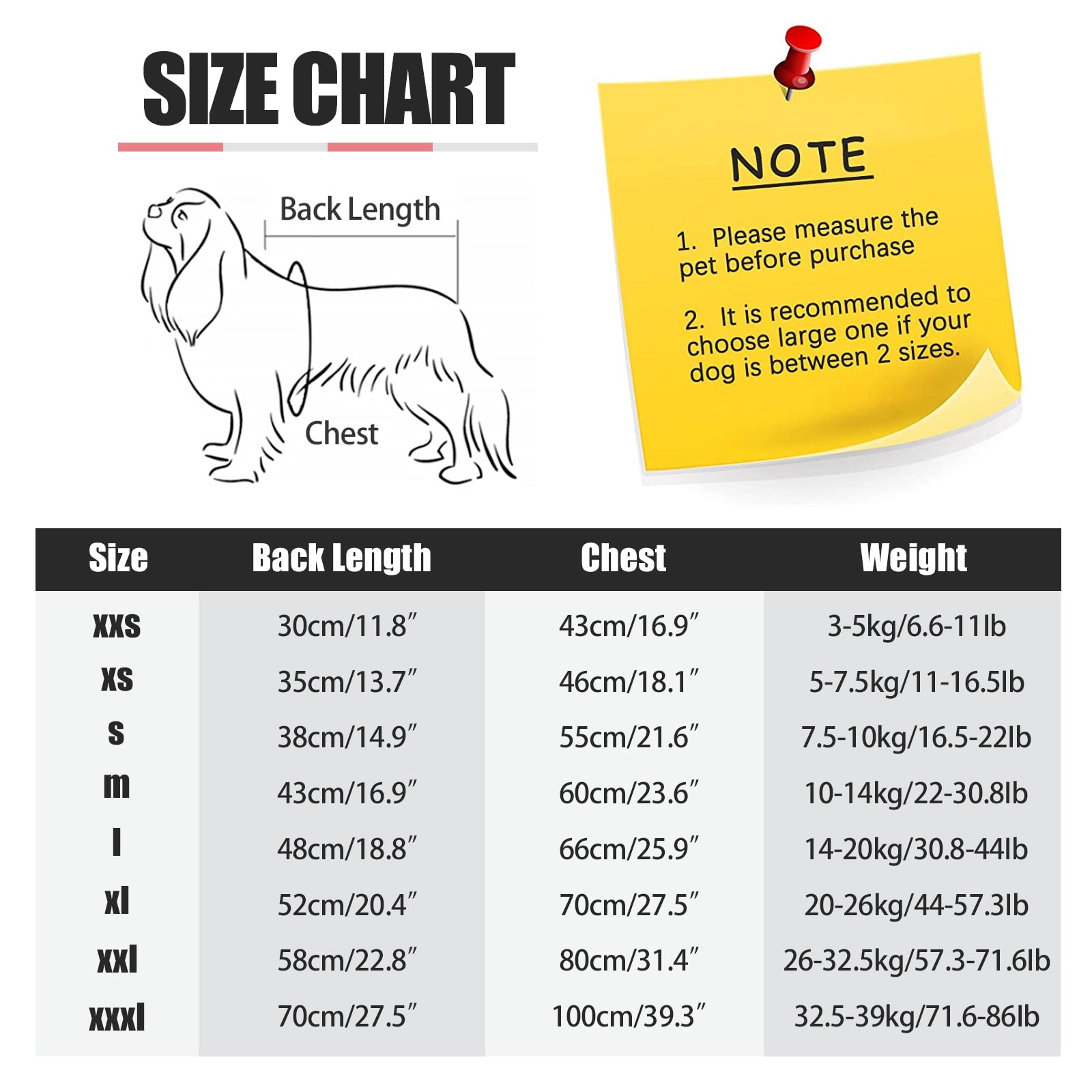 FOR SMALL MEDIUM AND LARGE DOGS: Sizes from XXS to XXXL, with chest girth of 16.9"-39.4" (43-100cm), for 3kg~39kg dogs.